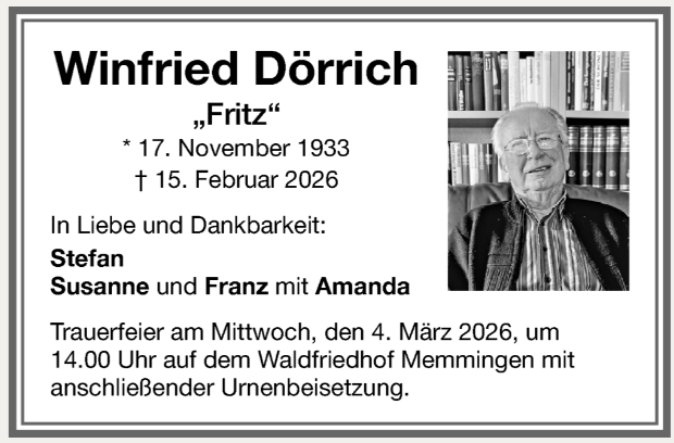 mit tiefer Betroffenheit haben wir die Nachricht vom Tod unseres Ehrenmitglieds Winfried Dörrich wahrgenommen.